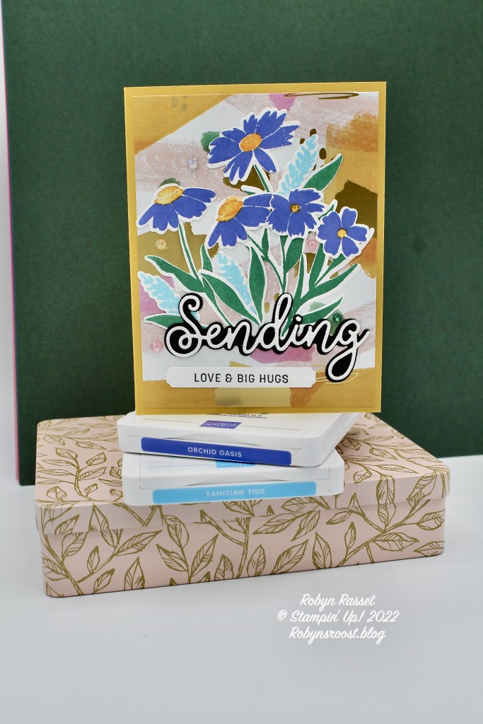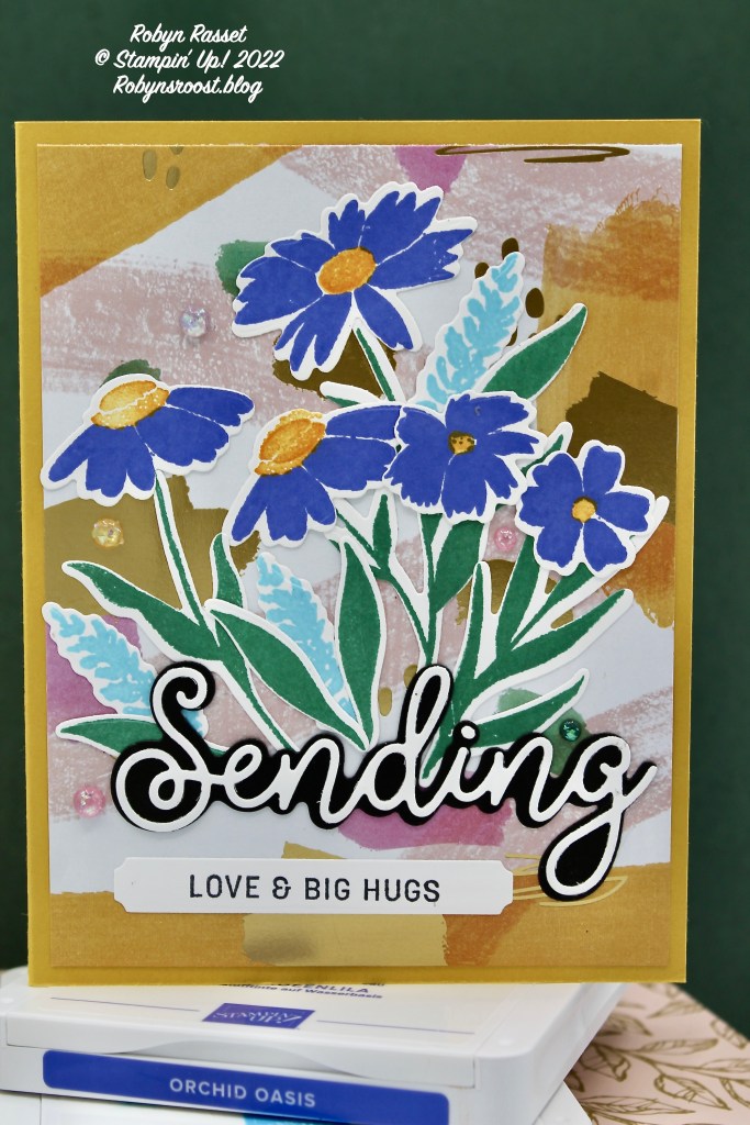 Two of the new 2022-2024 In Color inks are used for the flowers. They are so vibrant and worked well with the Abstract Beauty Designer Paper that I chose for this card.