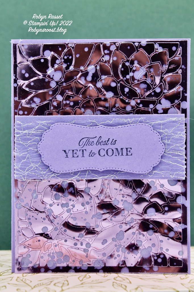The Hydrangea Hill Mercury Glass paper is on the Last Chance Sale for only $6.90 and was still available as I was writing this. These items are only available while supplies last so don’t delay if you want to get some. I’m happy to say that both the Metallic Ribbon, Celebrating You, and the Potted Succulent Dies are all carrying over into the new Annual Catalog.