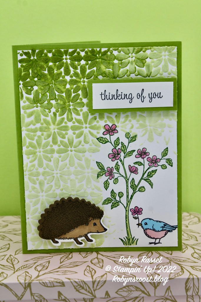 Today’s card features images from the Happy Hedgehogs stamp set and a greeting from the Expressions of Friendship Hostess set from the January to June Mini Catalog.