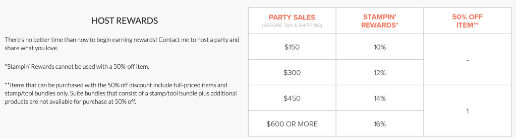 Did you know that when your order reached $150 you begin earning Hostess Rewards? They can be used to purchase anything in the catalog but always be sure to look for the special Hostess Reward items first! They can only be purchased with Hostess Rewards and are always at a reduced price. So when you purchase the Hostess Reward items you double up on the savings!