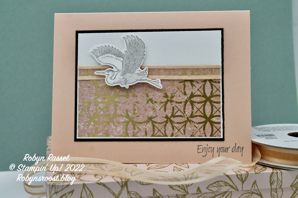 The Pale Papaya Open Weave Ribbon is very subtle but added just the right touch across the top of the designer paper.