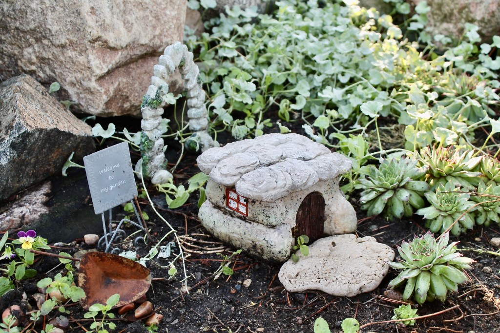 My fairy garden looks a bit bare after I pulled out the poppies and wildflowers that were mostly done blooming, but now the mosses and hens and chicks are finally visible.