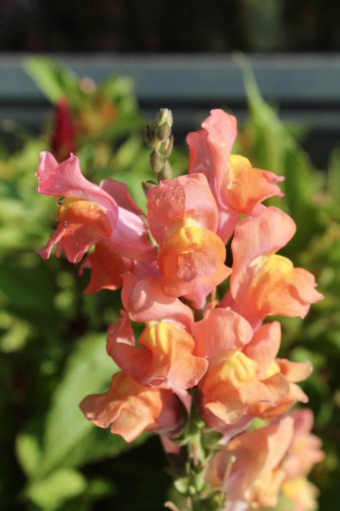 My bed in front of the solarium is filled with volunteers or plants that just reseeded themselves. I’m afraid that I didn’t thin them very well and they look a bit like a mess, but these tall Snap Dragons are pretty.