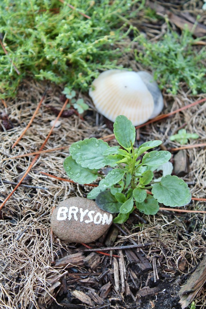 I gathered some flat stones up no the North Shore and painted each of my grandkids names on a stone to add some more fun personalization to my fairy garden.