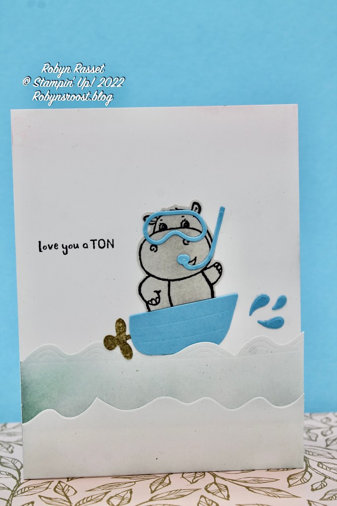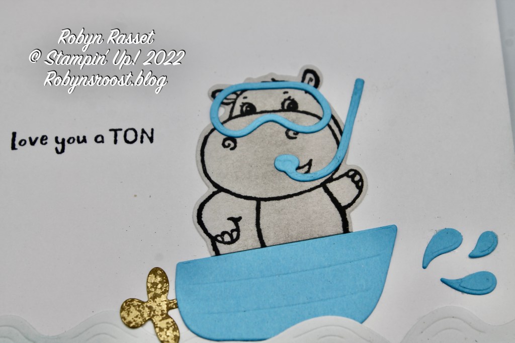 How much fun is this? The cute Hippo Dies, which are part of the SALE-a-bration Event, have a fun boat and propeller so that the Hippo can take a little boat ride.