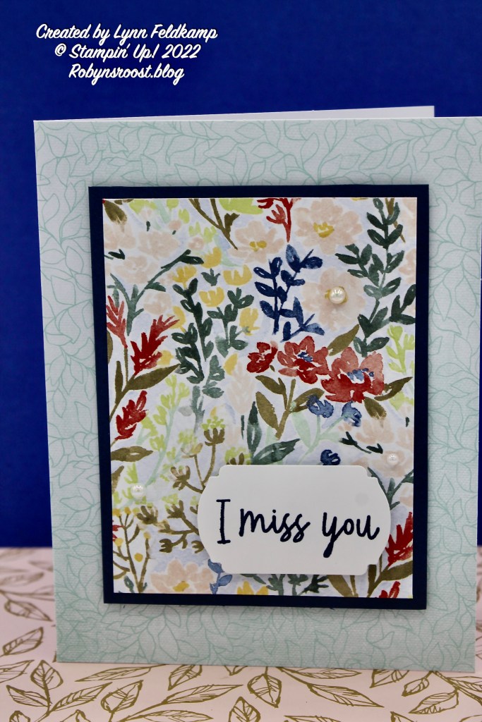 Lynn’s quick and easy card starts with one of those very popular Pool Party & Soft Sea Foam card bases which sold out in under 2 weeks. The pretty floral designed paper is from the Rings of Love SALE-a-bration paper pack and the greeting is from the Amazing Phrasing SALE-a-bration stamp set punched out using the Label Me Fancy Punch.