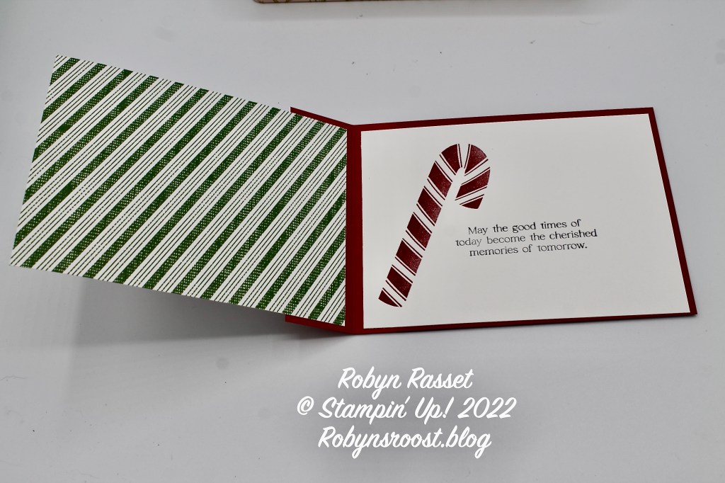 I chose the Sweetest Christmas Suite items for my card. The really neat thing about this fun fold is that both sides of the double sided designer series paper shows!