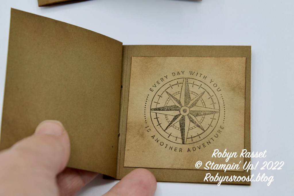 The Faux Leather Technique is used to distress the paper and make it look like a little leather book. My first two mini books were made bigger (3″x3″) but when I tried to put them into the little envelopes, I couldn’t get them back out, yikes! Back to the drawing board. Of course, each version looks a bit different so I will share photos of all of the variations.