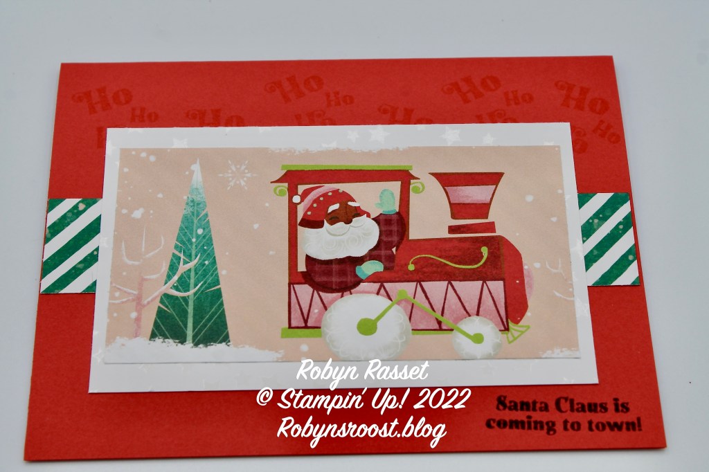 Looking for a quick and easy card design for Christmas? This cute card featuring the Santa Express Designer Series Paper fits the bill.