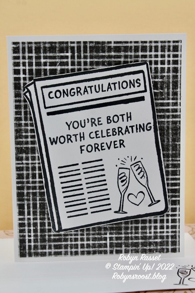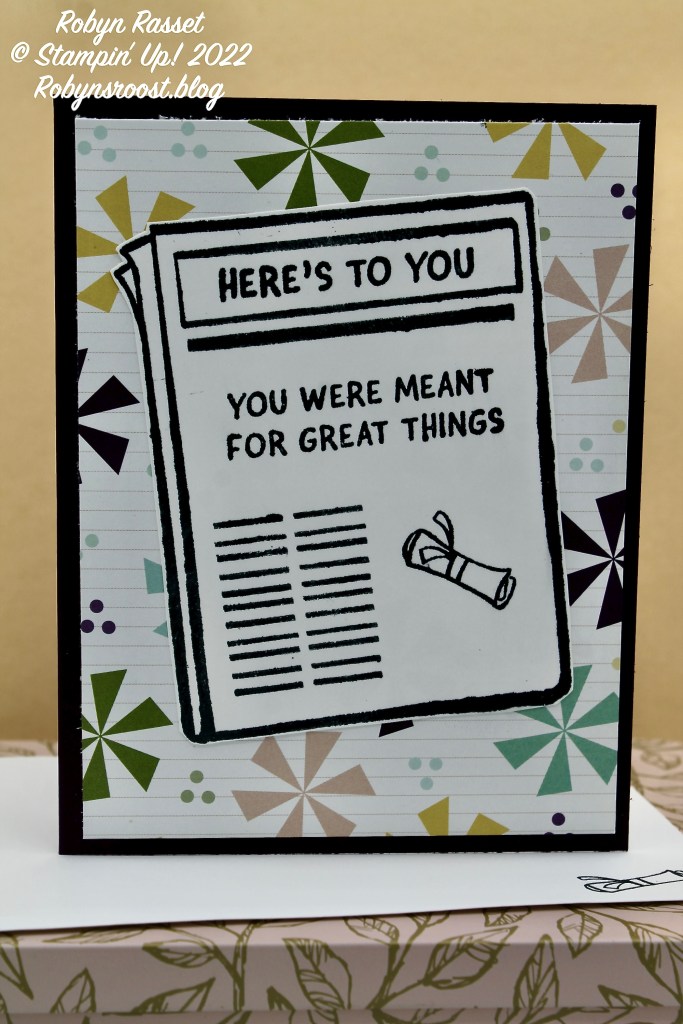 Do you ever get a chuckle every night when David Muir starts the World News with his Breaking News line? I know that I do, especially when the news is a repeat of the night before, lol. But, today’s card uses the fun Breaking News stamp set which gives a nod to the old fashioned method of getting news, the newspaper.