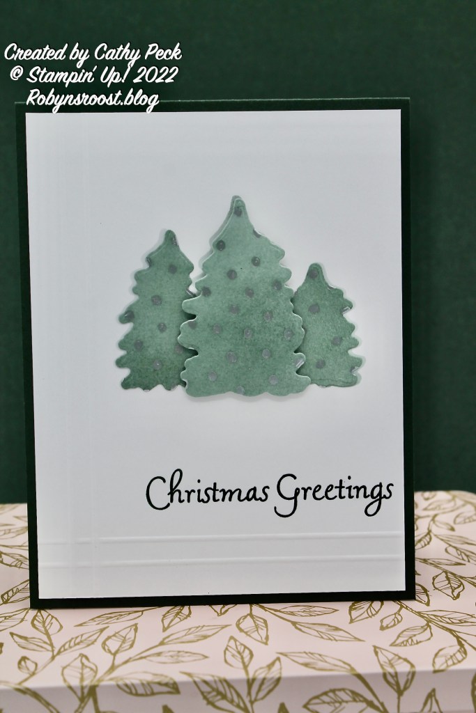 Although the Trees for Sale stamp set is no longer available, I did want to share these cards with you. Often a layout can be used with other stamp sets. I thought it was interesting to note that the card above uses both of the two step tree stamps while the card below only uses one of the stamps. Do you have a two step stamp set that you can use this way?