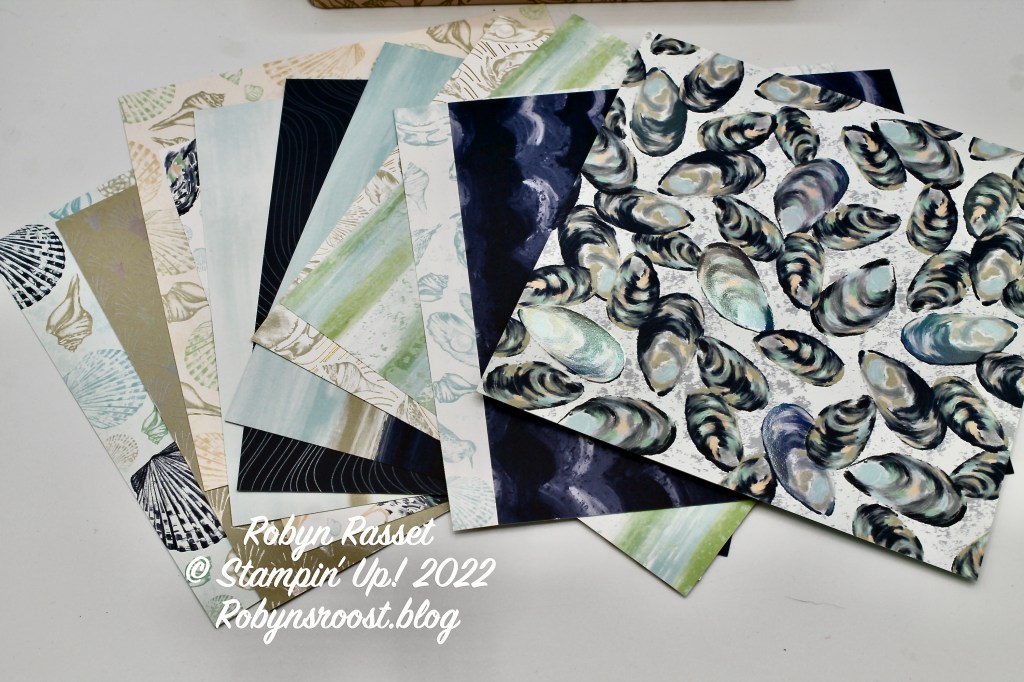 Here is a quick look at the By the Bay Designer Series Paper pack. Photos just don’t do it justice, but I thought I would try.