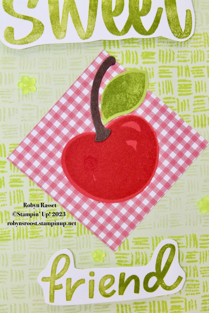The Sweetest Cherries Bundle comes with the stamp set and the Cherry Builder Punch, which makes a cherry, stem and leaf. I love the Country Gingham Designer Series Paper, doesn’t it make a great picnic cloth.