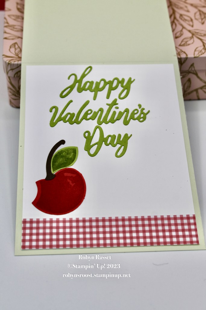 To turn this into a Valentine card, I pulled out my retired Word Wishes Dies and added another strip of the Country Gingham, and another punched cherry.