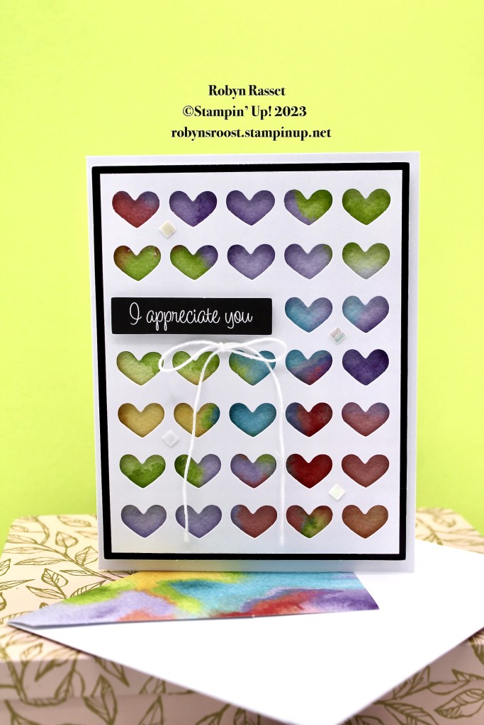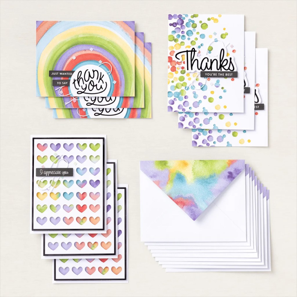I did need a scissors to cut the ribbon, but that was the only thing that I needed to complete the card. Even the envelope with the pretty colors on the flap was included. This kit is only $13 and makes 9 cards. It comes in a box for easy storage and makes for great grab and go crafting.