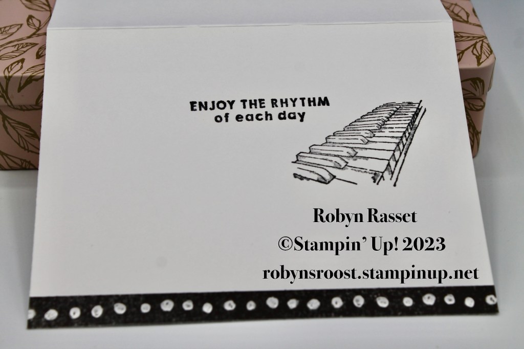 This simple card uses the Enjoy the Rhythm stamp set and the Perfectly Penciled Designer Paper perfect for a music maker with a spirited personality.