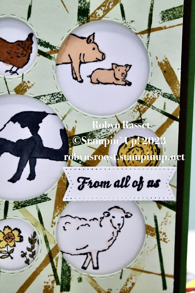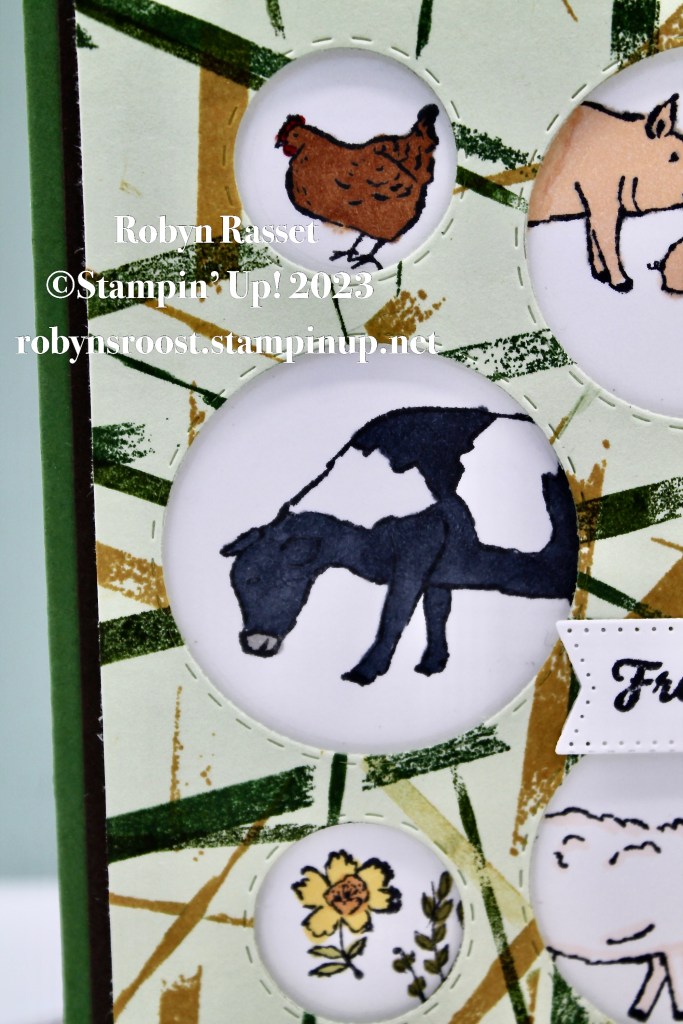 Product List – I have included the On The Farm Bundle link below. I didn’t use the dies on this card but if you order the stamp set, I recommend getting the Bundle so that you have the dies too. The Bundle saves you 10%.