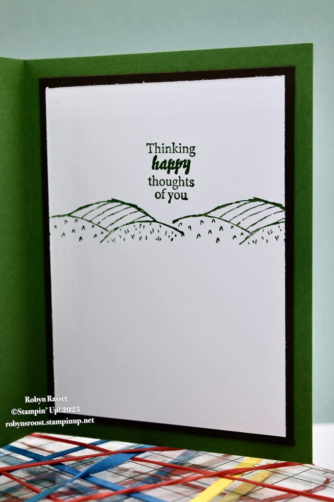 The inside layers have the same dimensions as the front, for a consistent look. The images and greeting inside are stamped with Garden Green ink.