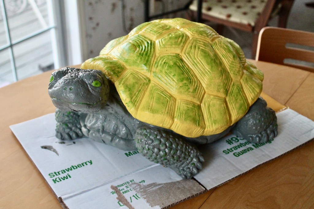 Here’s my little turtle friend all ready to head back outside to his place by the front door. Our dog Max likes to lay with his head on the turtle. Hopefully the new paint job won’t interfere with their friendship, hehehe.
