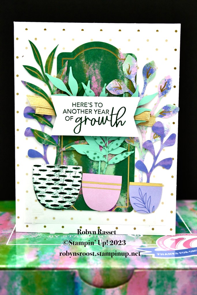 Last night I finally opened my March Paper Pumpkin Kit, the Ten Years of Growth kit. which celebrated the Paper Pumpkin 10 year anniversary. It’s hard to believe that it’s been 10 years already! I became a Stampin’ Up! demonstrator the same year that Paper Pumpkin started. I sure am glad that I finally decided to purchase a Starter Kit and join back then! I have made so many amazing, and creative friends.