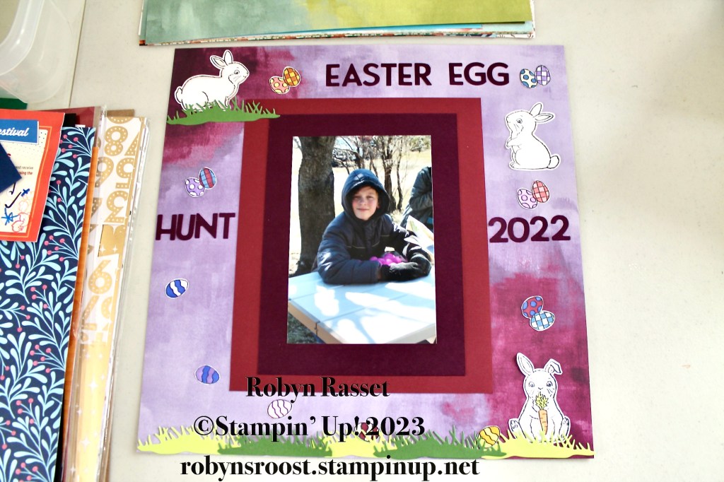 Easter was really tough for me. I’m used to being surrounded by my children and their families and it was a bit lonely down here in our retirement paradise. To help me feel closer to the kids, I started working on my Easter scrapbook pages from last year’s celebrations. I’ve been busy working on my scrapbooks but still have a long ways to go to get caught up!