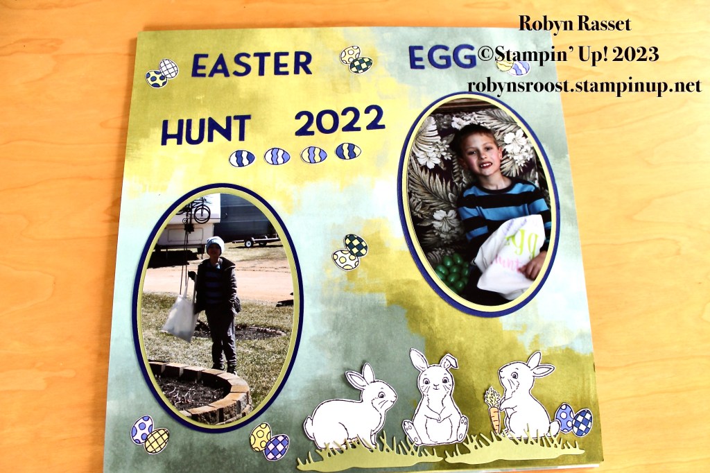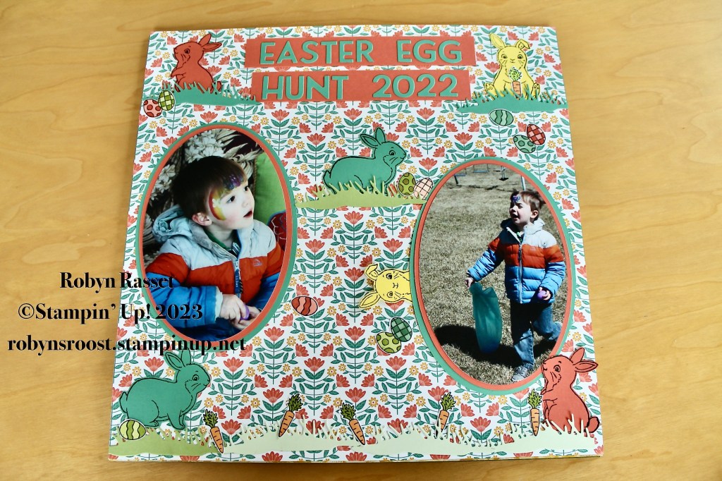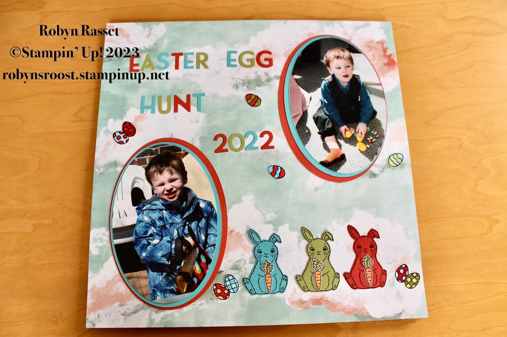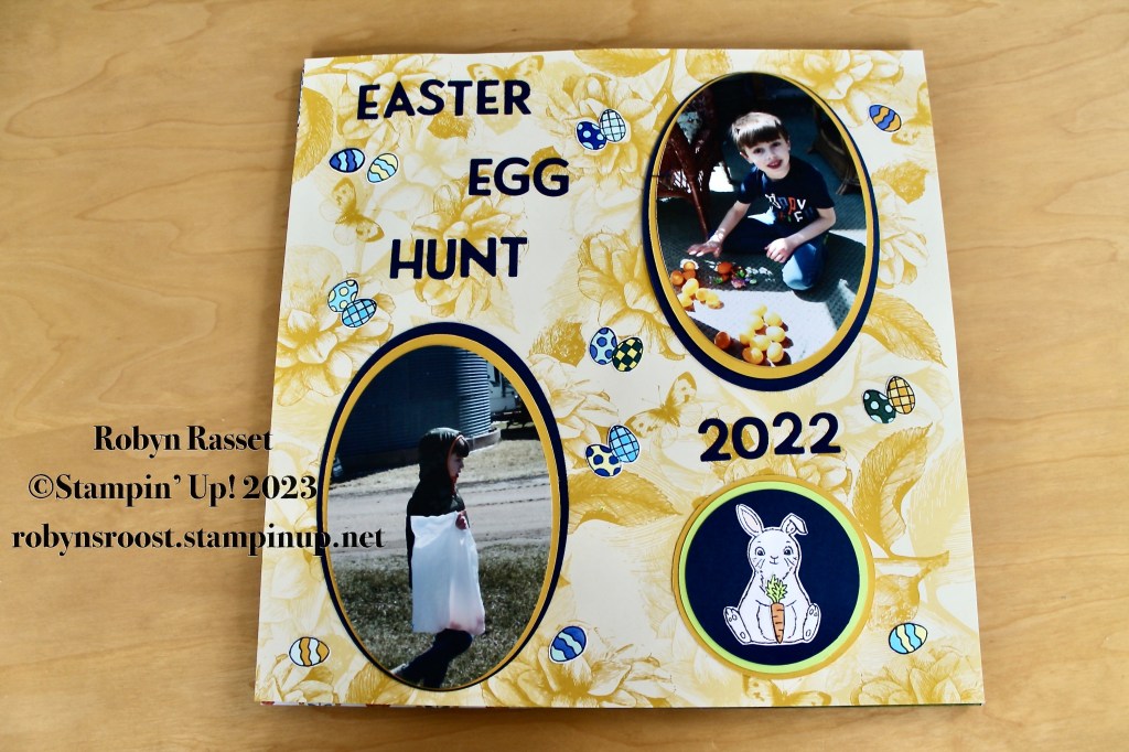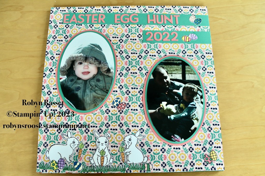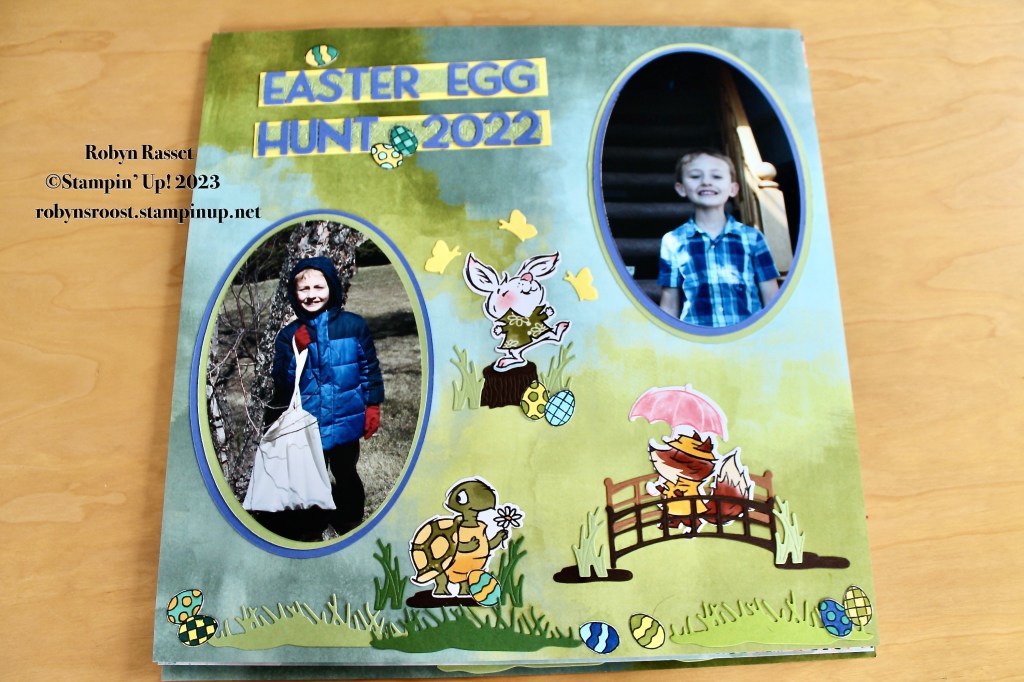 Happy Monday! I’ve been busy working on scrapbook pages. I shared my first Easter 2022 page last week and here are the other six pages, using mostly the Easter Bunny stamp set. The background papers are all different Stampin’ Up! Designer Series Papers.
