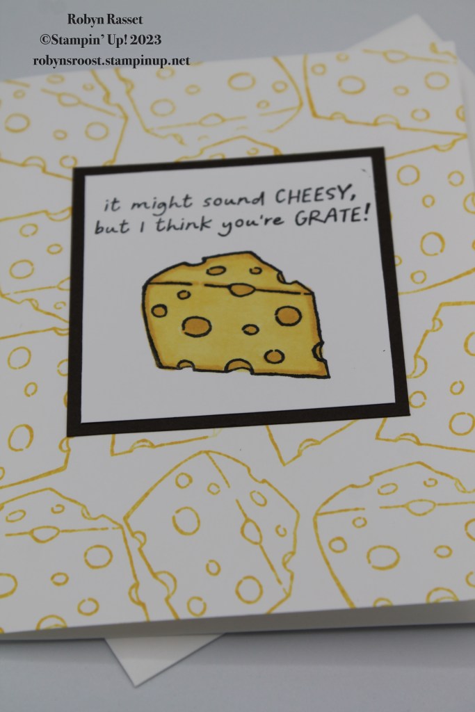 Although the A Little Cheesy stamp set is no longer available, these card layouts could work well for other similar sized images.