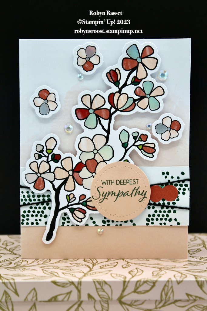 For the final card, I used the black twine instead of the Coral and left off the Calypso Coral strip, it just didn’t mesh well with shaded spruce base.