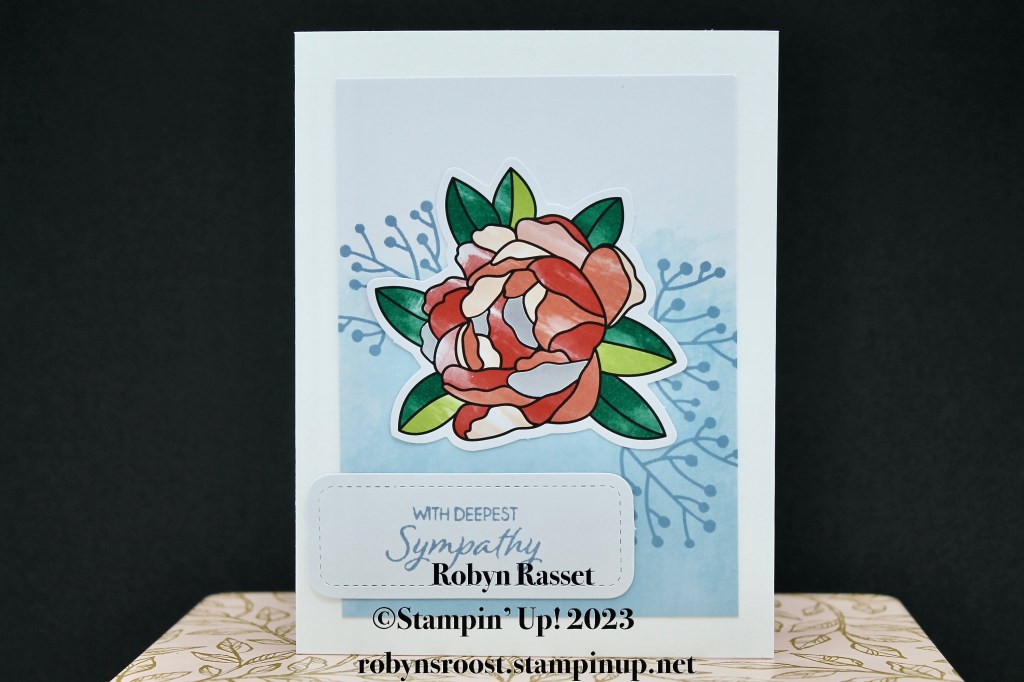 Here’s how I used one of those extra flowers to create a card. I did pull in some Boho Blue ink for the greeting and sprigs behind the flower.