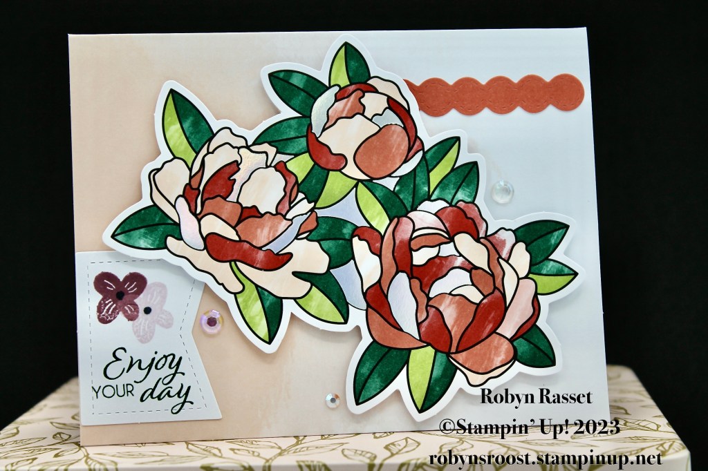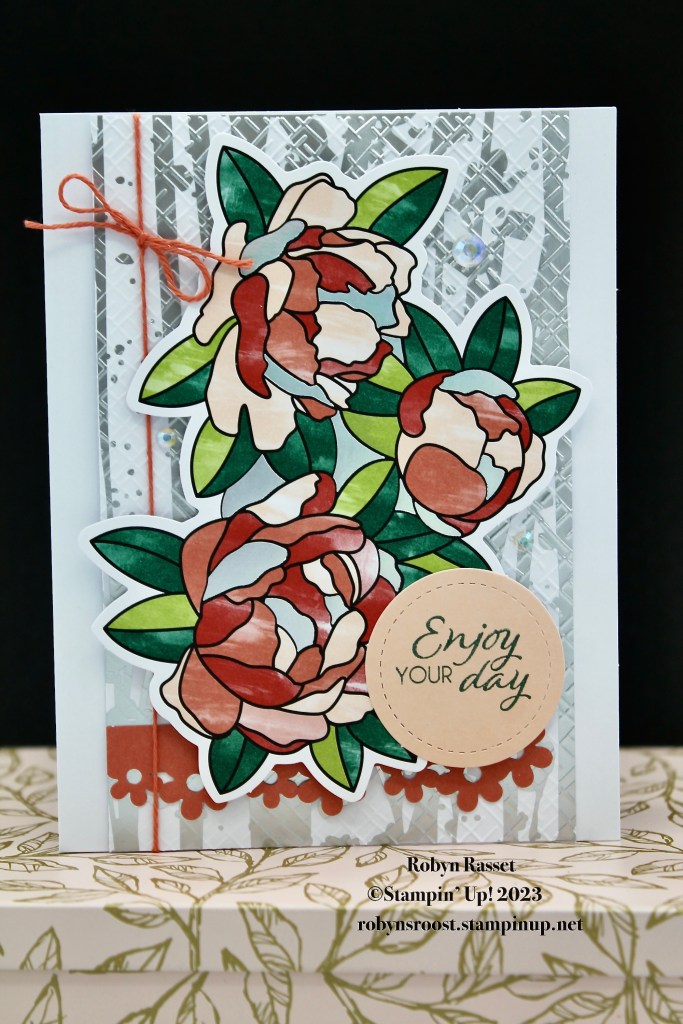 This card was done mostly to the directions except that the single flower was not added over the large flower. I felt that I could make more cards and it didn’t add enough extra pizzazz to warrant putting it on the card.