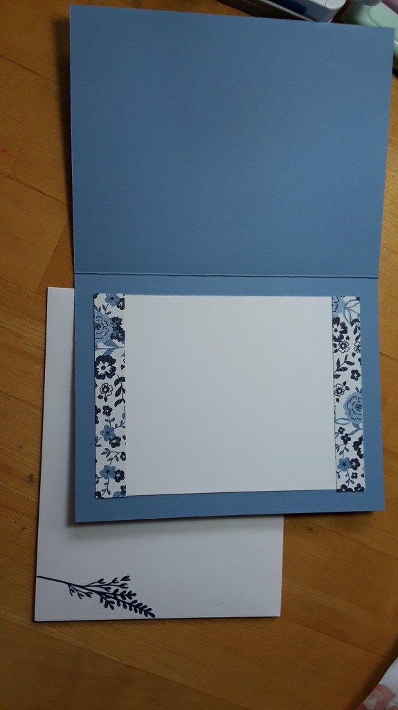 The inside was given a white liner with some scrap strips of Countryside Inn DSP, while the envelope got a single stem in Misty Moonlight.