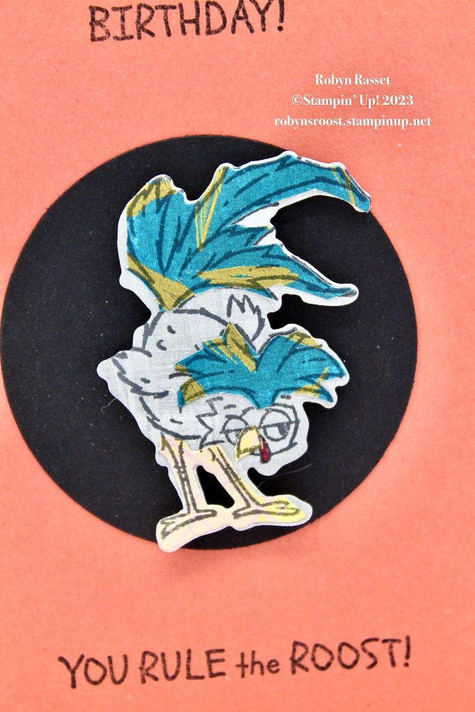 The first layer of this wild and crazy birthday rooster was stamped on a gray colored piece of the Fresh as a Daisy Designer Series Paper.