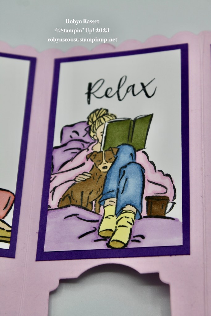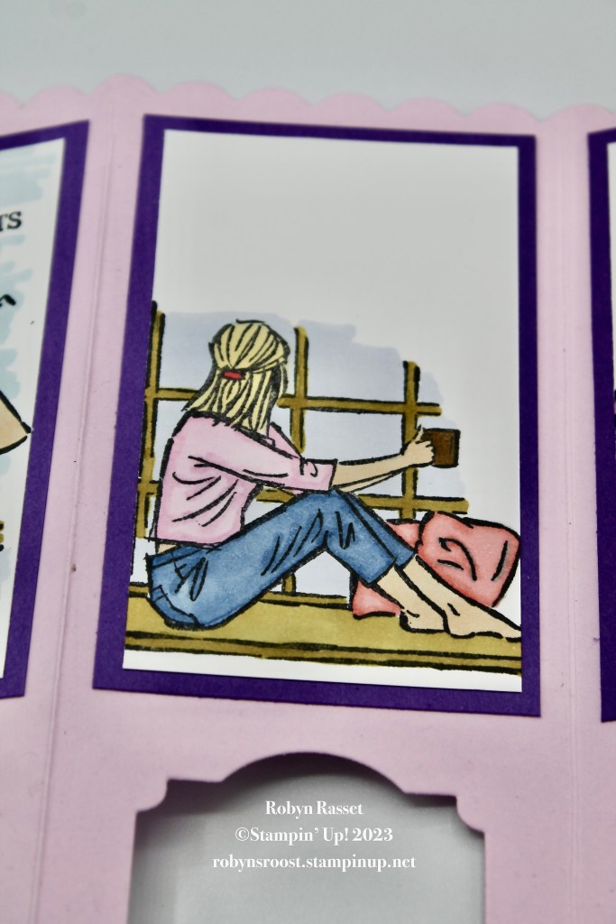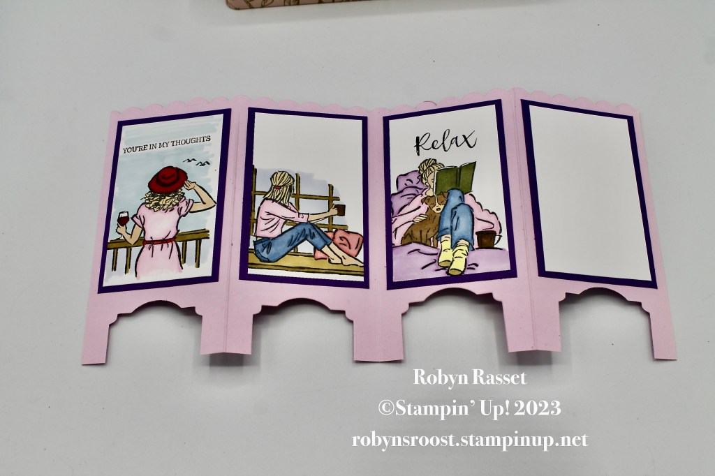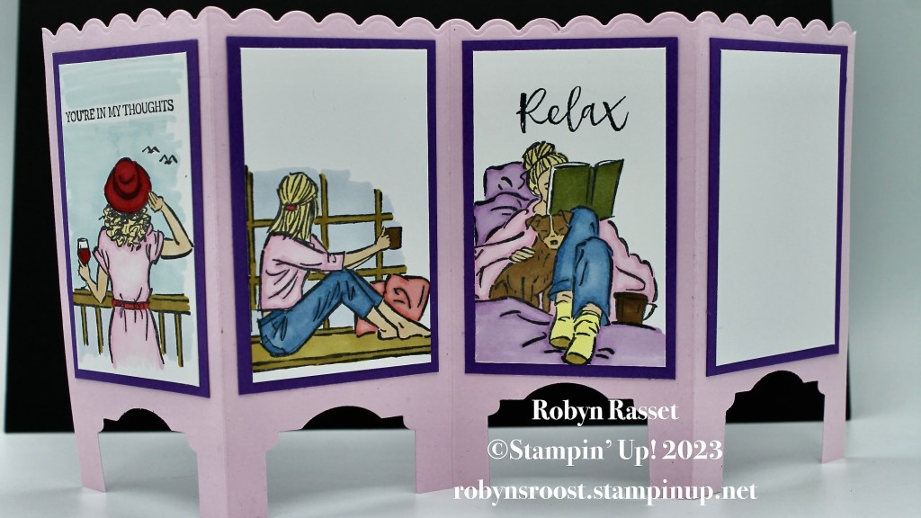 This little faux room screen is decorated with images and greetings from the In the Moment stamp set.