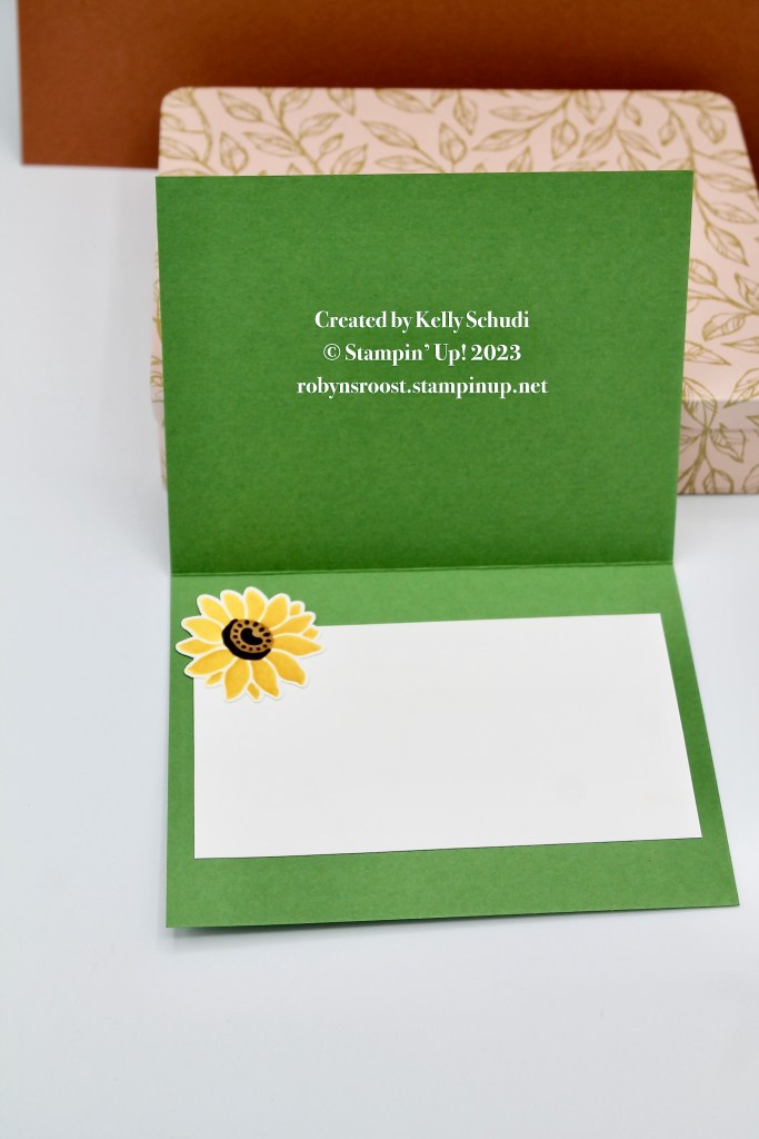 Kelly has even added a fussy cut flower on the inside of the card. These little touches make a card so special.