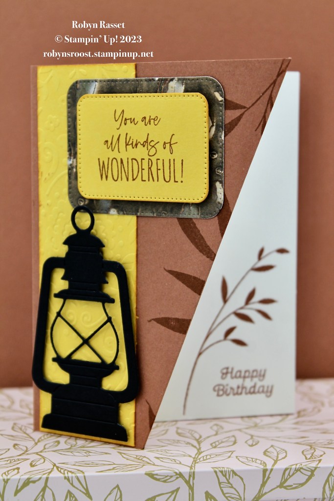 Today I’m sharing a birthday card with a fall camping theme using the Lighting the Way stamp set and dies. Fall is my favorite time of year, and camping in the fall is awesome, especially in a heated 5th wheel.