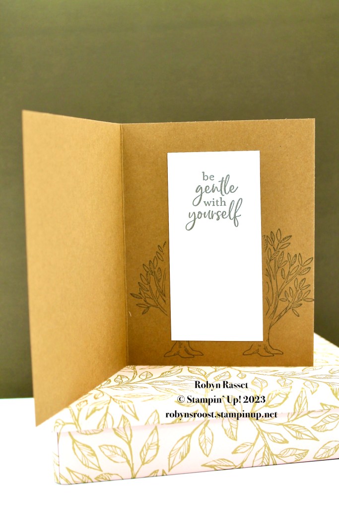 The inside has more of the trees stamped first and then a white strip with the greeting, from the Growth Takes Time set centered.