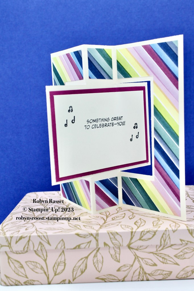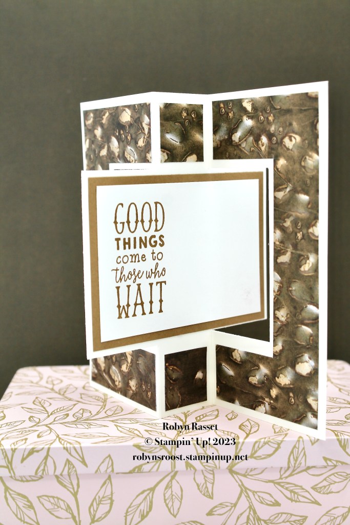 Today I’ve got a bunch of cards that I made with the Swinging Center Fun Fold. I had so much fun with this fold that I just had to try it with other papers and stamp sets.
