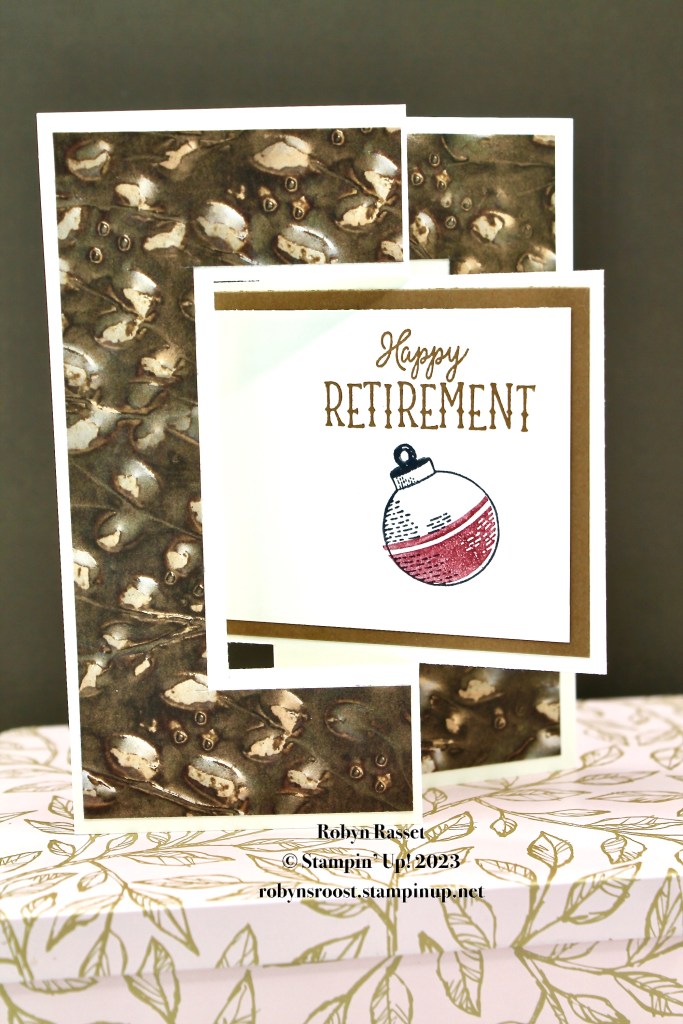 This card uses another paper pattern from the Earthen Elegance DSP combined with the Darling Details stamp set. This was a card that we made in the Creative Cards Class. Lots of stamping on this one.