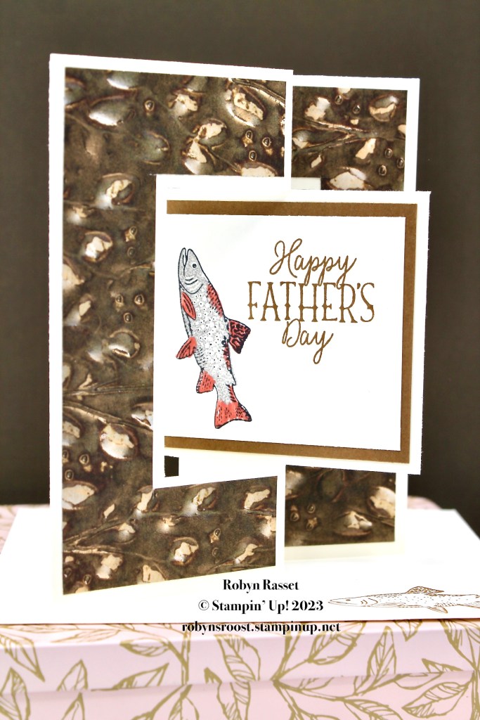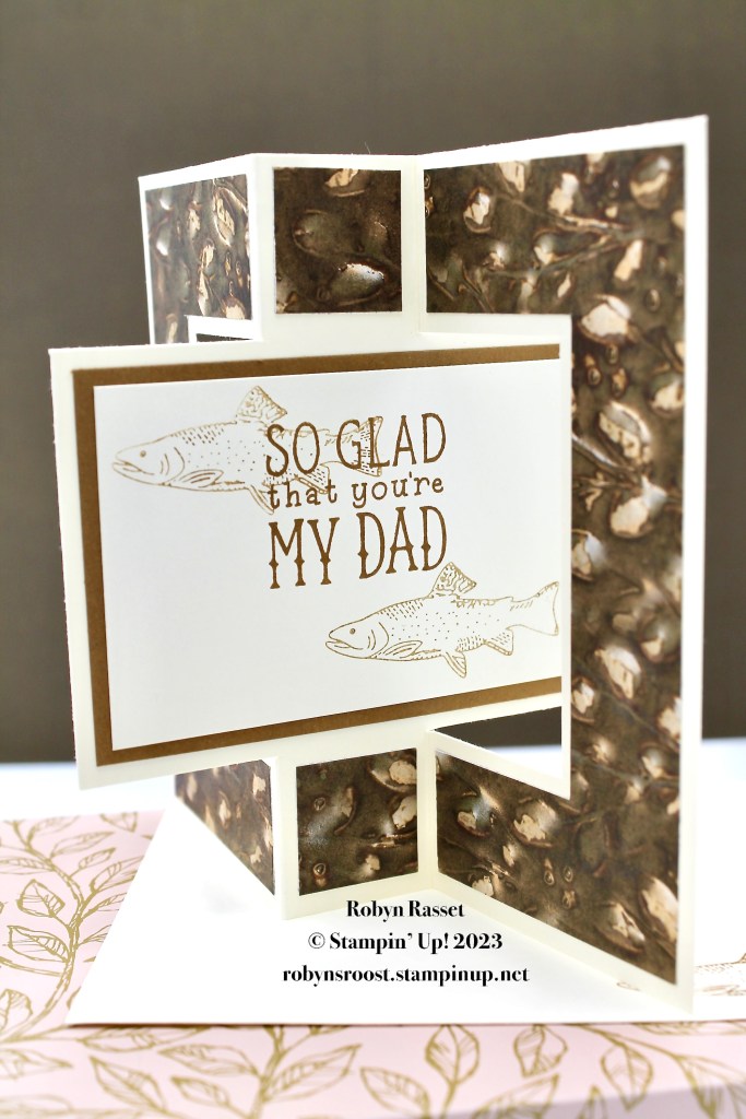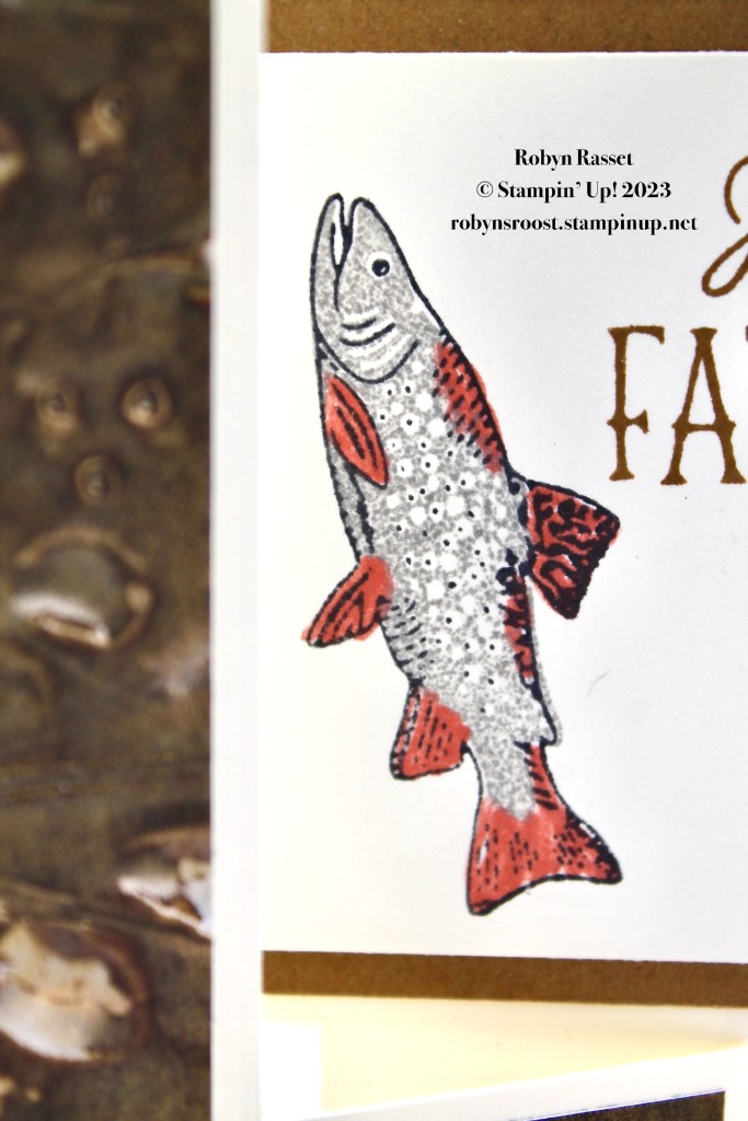 For the inside I didn’t add any coloring, just stamped everything in Pecan Pie ink. I know it’s early for Father’s Day, but this paper just spoke to me, lol, my dad has been gone for years but some of my fondest memories of him are the times we went brook trout fishing together.