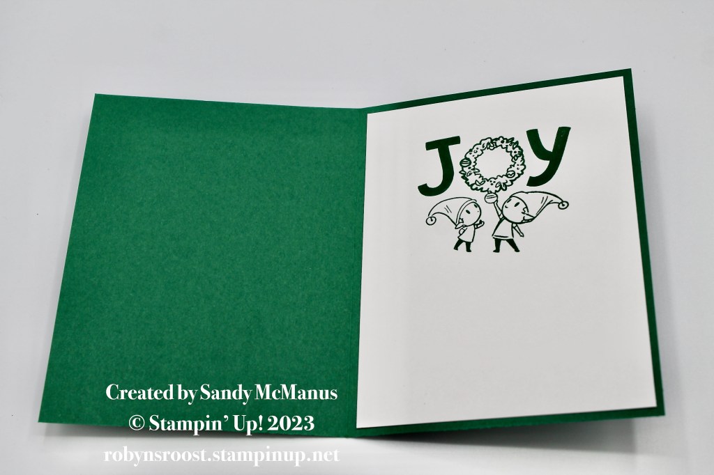 The inside has the cute elves hanging a wreath. This cute set also includes a fun Santa and Sleigh image.