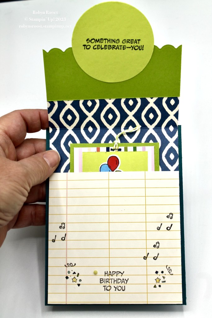 This cute pocket card is fun to make and could be used to give a gift card or some money. My version has a second Zany Zoo animal and a small writing area.