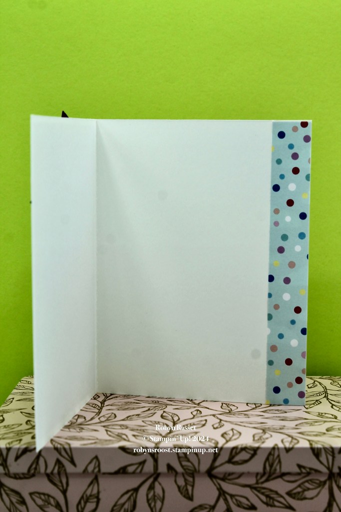 For the inside of this card, I used a leftover strip of the Lighter Than Air DSP. I haven’t added a greeting to these cards yet, they may become Valentine’s.
