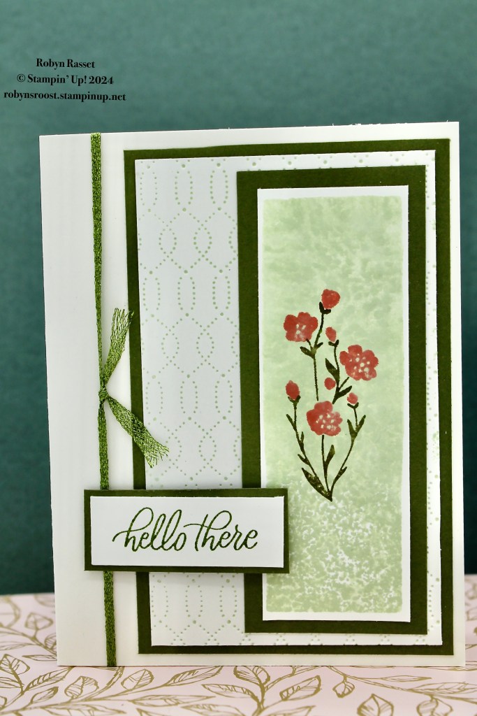 Today’s card is another version of a card that I shared a few weeks ago. That card was done in pinks while this one is done in greens.