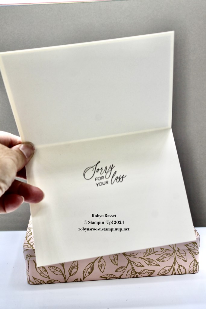 The inside has another greeting from the Quiet Reflection stamp set. All of the images and greetings are inked with Pebbled Path ink. This series of sympathy cards use the five 2023-2025 In Colors.