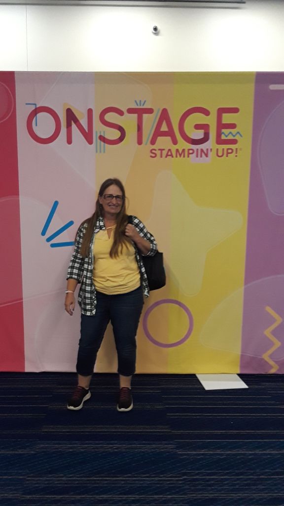 The OnStage After Hours event was a little disappointing. We paid $80 to attend and were packed around a table like sardines. It didn’t help that I was exhausted by then and couldn’t sit next to my besties who had brought the paper trimmer, lol. I tried to do all the stamping and will assemble the cards later. It was nice to see and use the new in colors. Peach Pie, Summer Splash, Pretty in Pink, Petunia Pop, and Shy Shamrock.
