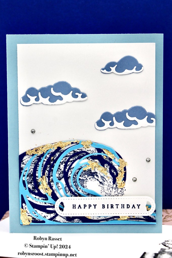The original card is on page 113 of the Annual Catalog. I’ve switched out the colors a bit but otherwise the card is very similar. The greeting is done with a die cut from the Waves of Inspiration Dies.