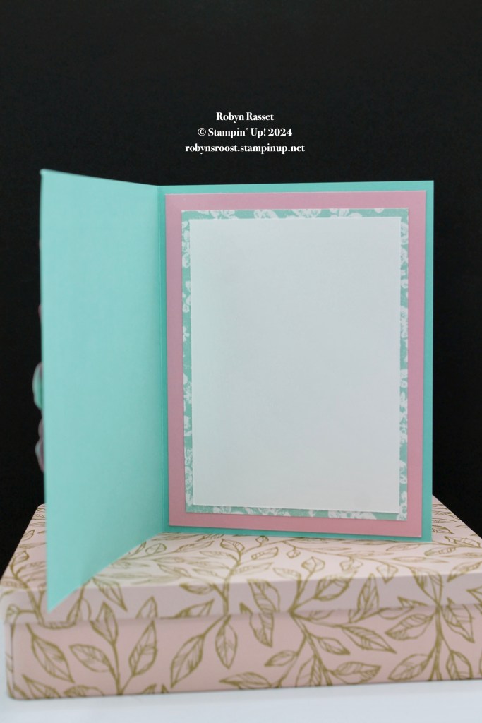 Even the inside of the card has multiple layers to coordinate with the card front. The pink rose is created with the new Pretty In Pink 2024-2026 In-Color while the greeting rests on a piece of Bubble Bath pink cardstock.