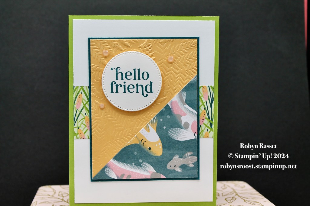 Of course, I chose my current favorite stamp set the Charming Duck Pond! I’m working on a top secret kit class with two of my stamping buddies and guess which bundle I’m going to be using? Watch for more information on how to order the kits coming next month.