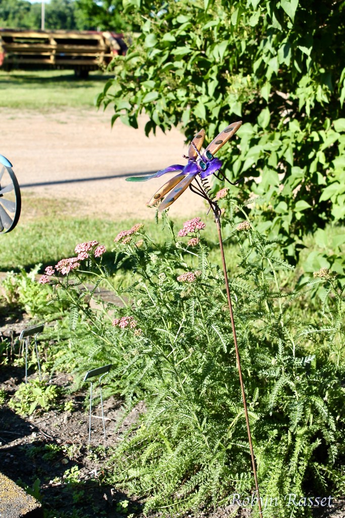 This little dragon fly is from a trip to the Amana Colonies in Iowa. The Yarrow behind it had also taken over this flower bed but I dug out half of it. Now the bed looks a bit forlorn until I get some others plants growing again.