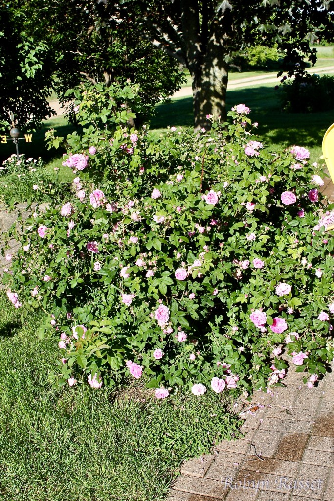 This is something of an heirloom rose bush. It came from my mom. When I lived in northern Minnesota it would bloom the middle of July and I remember standing next to it for birthday photos. Here it blooms in June.